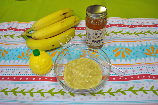ثمرة موز ناضجة – ملعقة من العسل – 10 قطرات من عصير الليمون