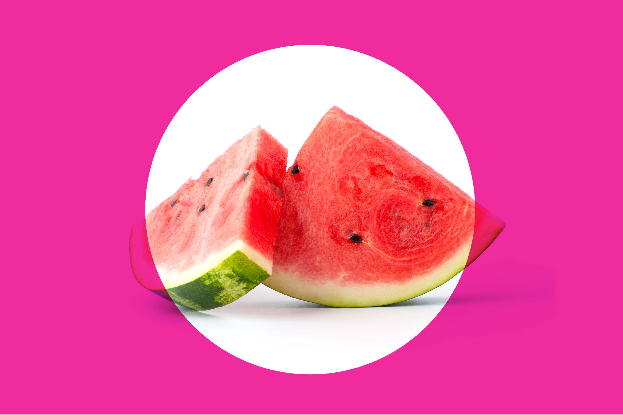 البطيخ أيضاً من الفواكه الغنية بالبوتاسيوم الذي يساعد في خفض وزن الماء في الجسم .