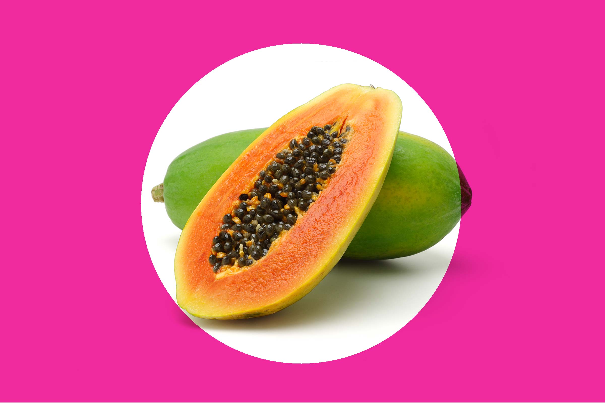 ولكن البابايا تستحق أن تضاف لقائمة البقالة الخاصة بك لأنها تحتوي على الكثير من الإنزيمات المحللة للبروتين والتي تسهل من عملية الهضم كما أنها غنية بالألياف وفيتامين A وفيتامين C حيث تحتوي على ضعف مقدار فيتامين C الموجود في البرتقال .